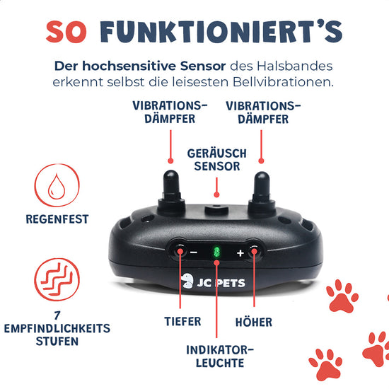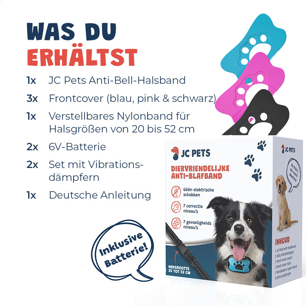Die JC Pets Anti-Bell-Halsbänder geben keine Schocks ab. Wenn dein Hund bellt, gibt das Halsband bei den ersten beiden Malen einen Piepton ab und danach auch eine Vibration. Es ist nicht beabsichtigt, dass dein Hund dadurch ängstlich wird, sondern dass dein Hund kurz abgelenkt wird, wodurch er mit dem Bellen aufhört. Auf diese Weise wird der Hund langfristig das Bellen vollständig verlernen.