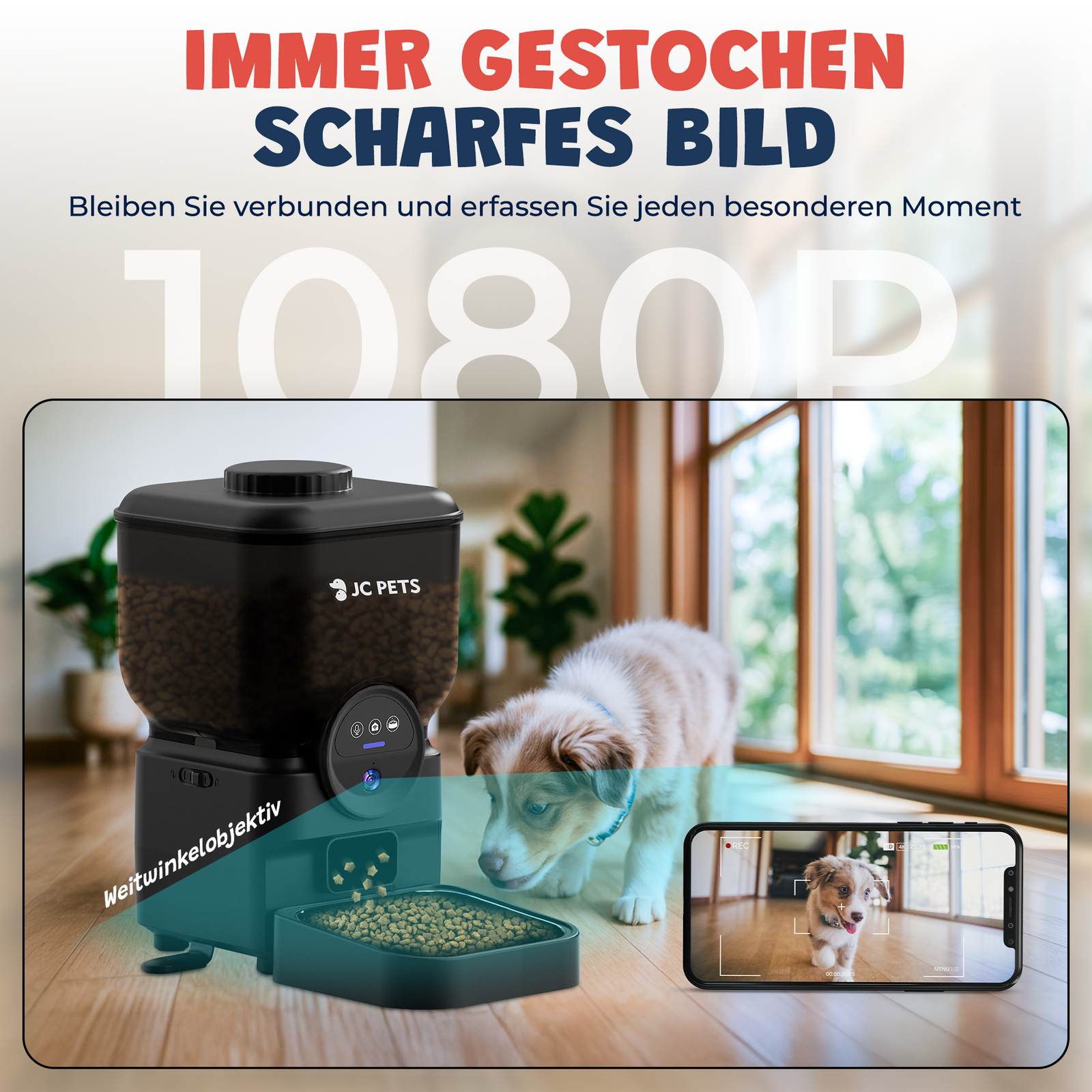 Ja, der Futterautomat verfügt über eine integrierte 1080P HD Kamera mit Nachtsicht und einem 110° Weitwinkelobjektiv, sodass du jederzeit in Echtzeit zusehen und mit deinem Haustier kommunizieren kannst.