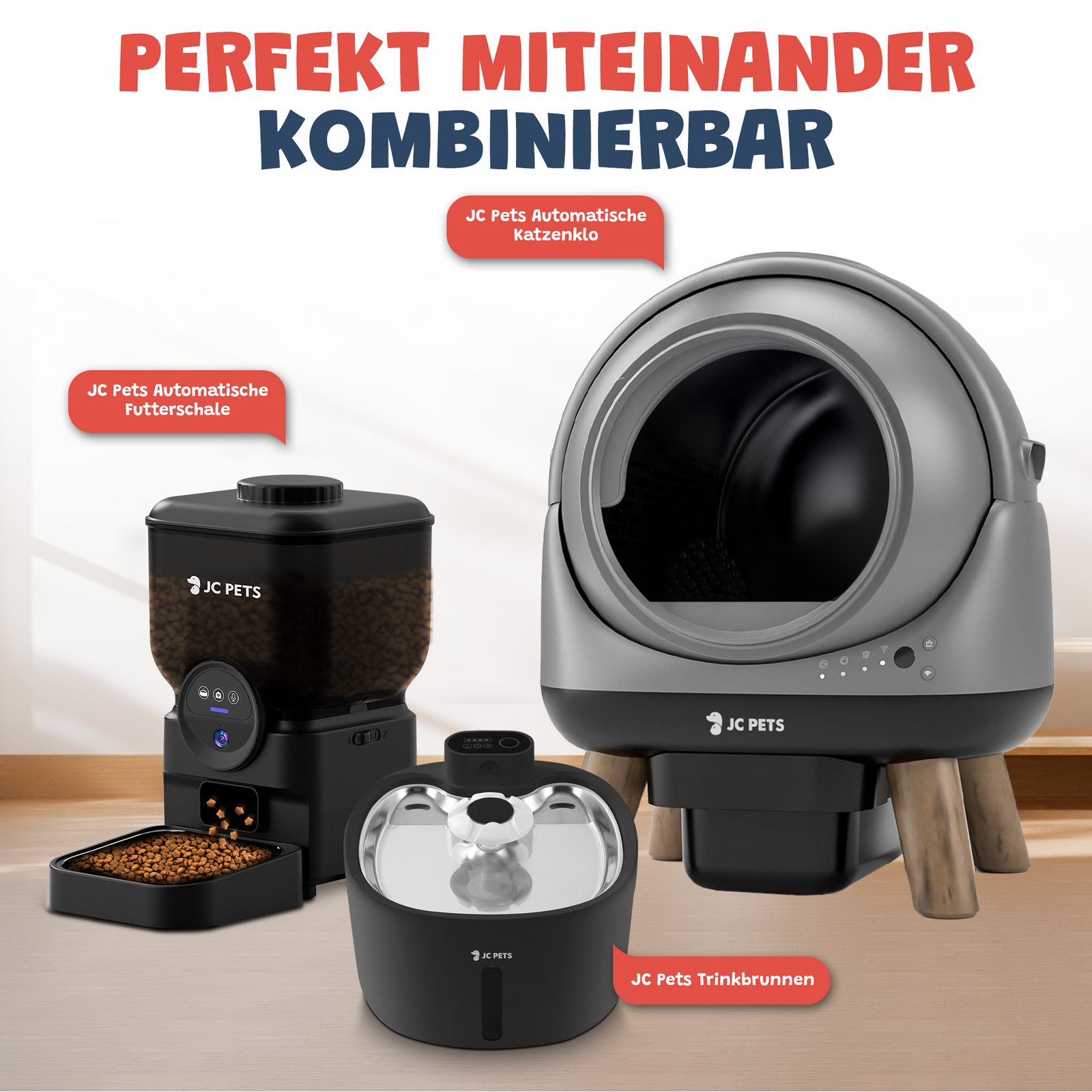- Lieferumfang Automatischer Futterautomat, Futtertank, Edelstahlnapf, Futterbasis, Ladekabel, Befestigungshalterungen, Trockenmittelbeutel, deutschsprachige Bedienungsanleitung