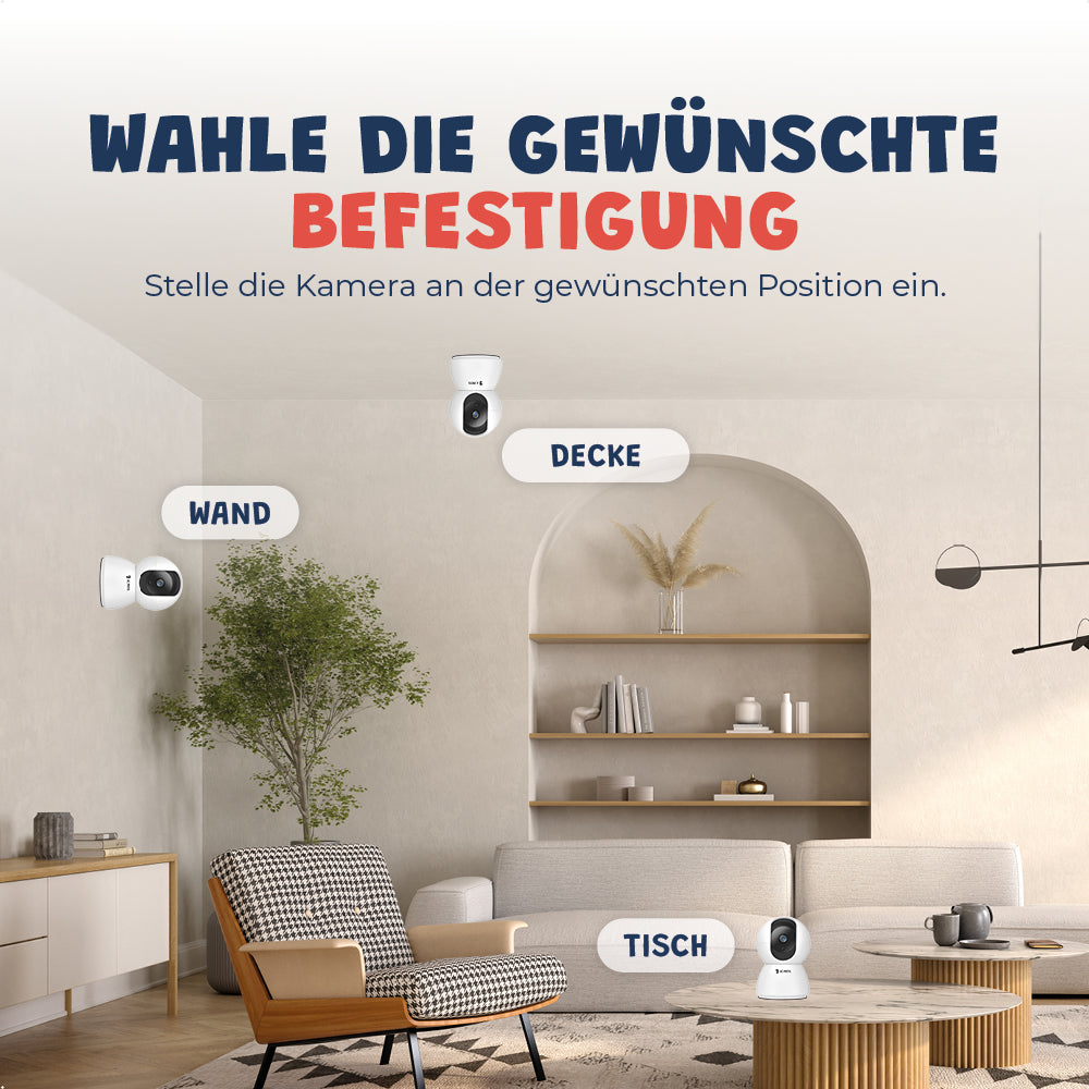 Die JC Pets Haustierkamera ist nicht einfach nur eine Kamera; es ist ein fortschrittliches Überwachungssystem, das dir hilft, mit deinem Haustier verbunden zu bleiben, selbst wenn du nicht da bist. Mit ihrer gestochen scharfen 3MP-Auflösung und der 360°-Drehbarkeit verpasst du keinen Moment dessen, was zu Hause passiert.
