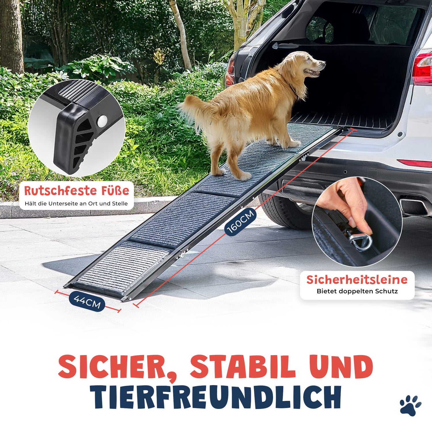 Ja, durch die extra Länge von 1,6 Metern hat die Rampe einen flachen Neigungswinkel. Dadurch ist es für ältere Hunde oder Hunde mit Gelenkproblemen deutlich weniger belastend, ins Auto ein- oder auszusteigen.