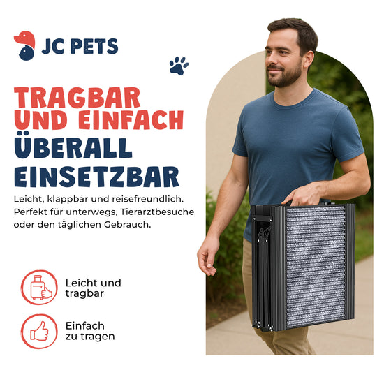 Mit der JC Pets Faltbaren Hunderampe schenkst du deinem Hund Komfort, Sicherheit und Bequemlichkeit bei jedem Ausflug. Bestelle noch heute und mache jede Autofahrt angenehmer für dich und deinen treuen Vierbeiner.