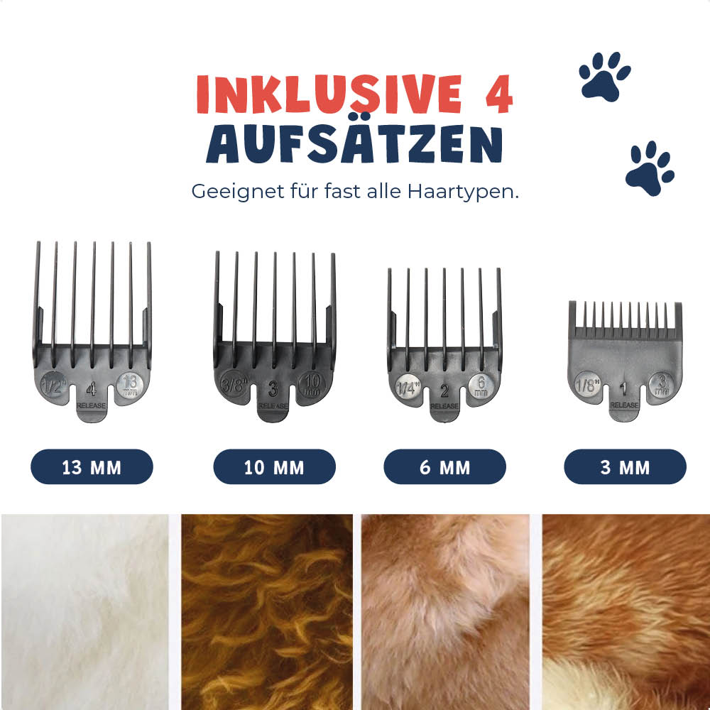 ✓ Einstellbare Geschwindigkeiten & Haarlängen bieten die Flexibilität, das Trimmergebnis an die Bedürfnisse deines Hundes anzupassen, für ein jedes Mal perfektes Trimmen.