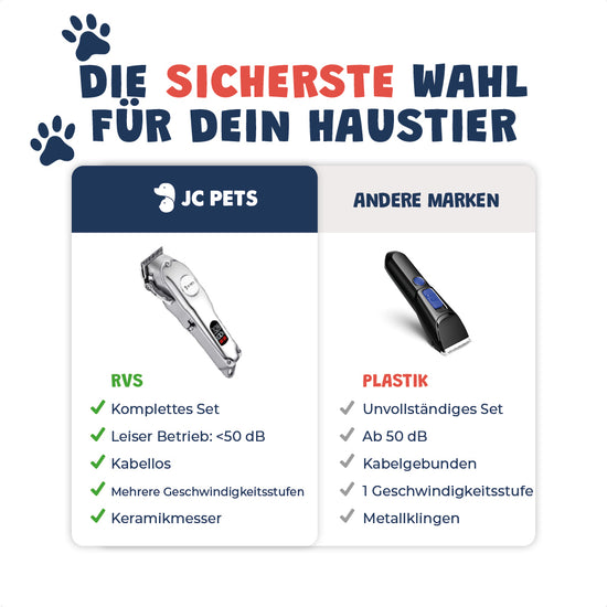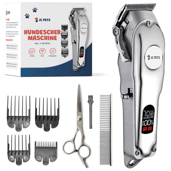 Die JC Pets Professionelle Hundehaarschneidemaschine ist mehr als nur ein Werkzeug; sie ist eine Investition in den Komfort und das Wohlbefinden deines Hundes. Mit ihren fortschrittlichen Funktionen und ihrer Vielseitigkeit ist sie die ideale Wahl für jeden Hundebesitzer. Bestell jetzt und erlebe den Komfort professionellen Trimmens zu Hause.