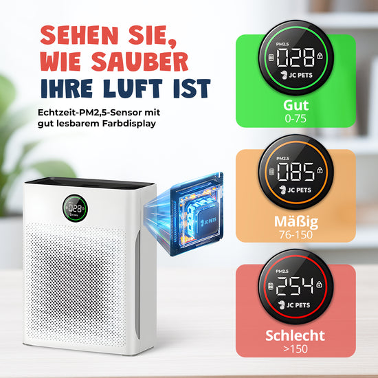 Der JC Pets Luftreiniger mit Pet Mode ist die Lösung für ein frisches und gesundes Zuhause. Egal ob du Allergien lindern, Katzen- oder Hundegerüche bekämpfen oder einfach sauberere Luft atmen willst – dieser Luftreiniger liefert Premium-Leistung ohne Schnickschnack.