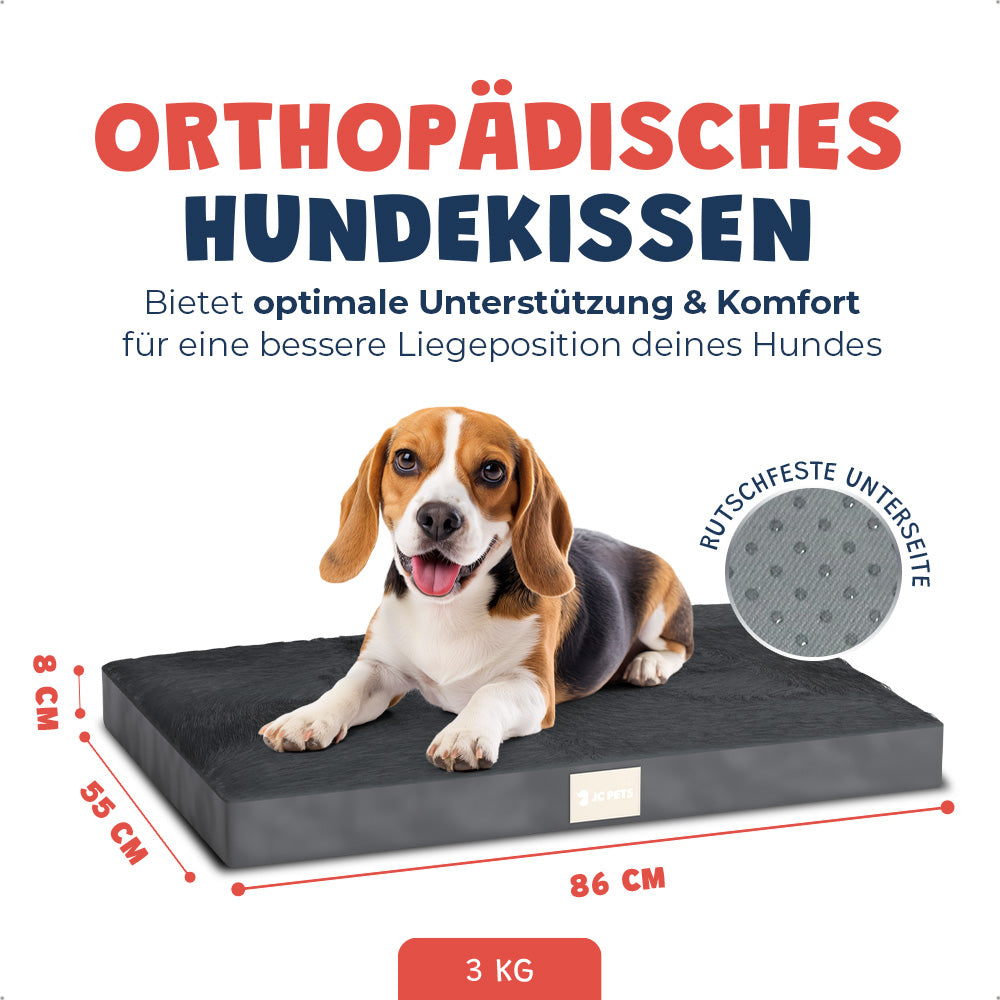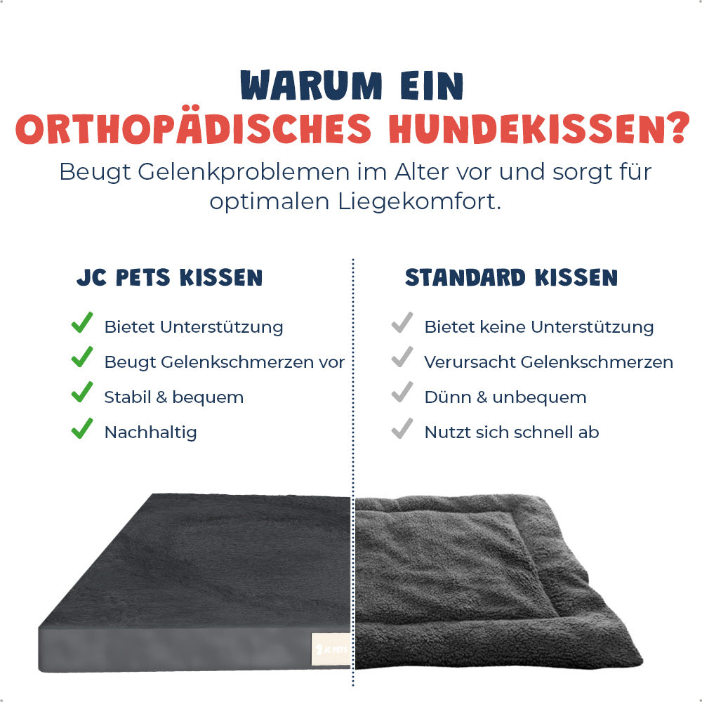 Das JC Pets Orthopädische Hundekissen ist die perfekte Wahl für jeden Hundebesitzer, der den Komfort und das Wohlbefinden seines Hundes ernst nimmt. Mit der ergonomischen Unterstützung, den langlebigen Materialien und dem praktischen Design bietet dieses Kissen alles, was du für den ultimativen Ruhekomfort deines Hundes benötigst. Erhältlich in fünf verschiedenen Größen, um den Bedürfnissen verschiedener Hunderassen gerecht zu werden. Bestell noch heute und gib deinem Hund den Komfort, den er verdient!